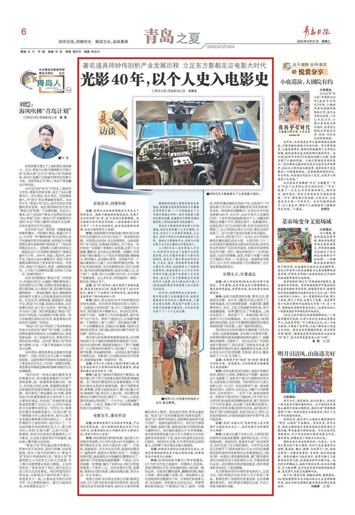 东方影都有很多非常热爱电影的人,正因为此,我们和园区内的多家公司才来到了青岛。影都负责人知道我们热爱电影,也非常尊重电影创作。我们希望长期留在这里,尽自己所能为影都作贡献。(青岛日报/观海新闻记者米荆玉)